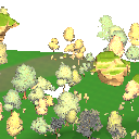 A makeshift bed of dried leaves and soft moss. Crude but sufficient for a night's rest.